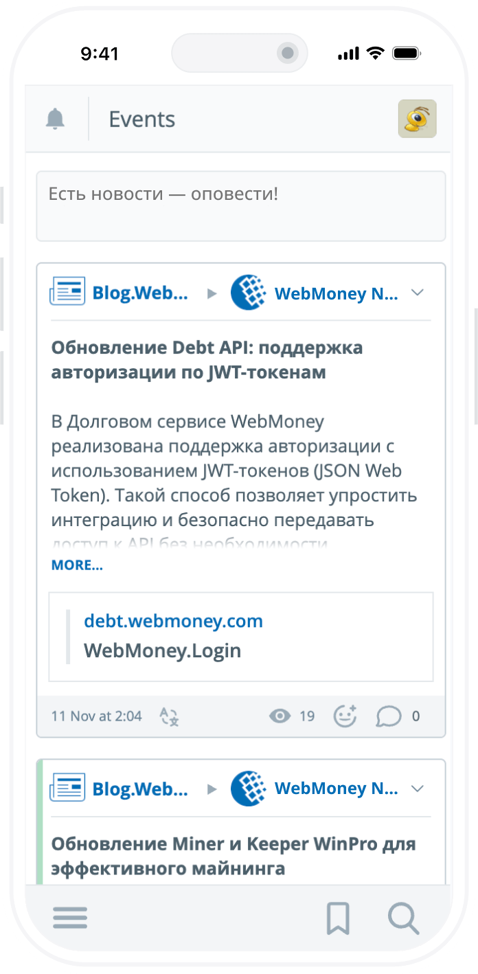 Быстрый доступ и управление кошельком WebMoney из любого места.